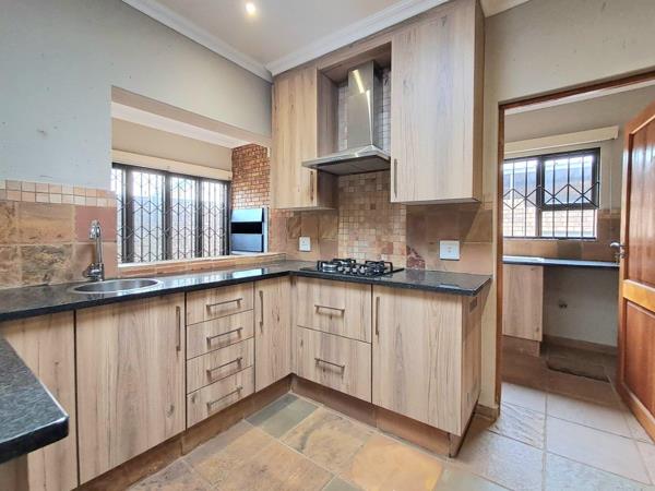 At the heart of this home is an open-plan layout that seamlessly combines the lounge and dining area with an enclosed braai space. Stacker doors open to the garden, creating a fluid transition between indoor and outdoor living areas. The kitchen is a chef''s delight, equipped with ample cupboard space, a sleek modern gas hob, and a dedicated scullerylaundry area with additional storage, ensuring you enjoy functionality without compromising on style.