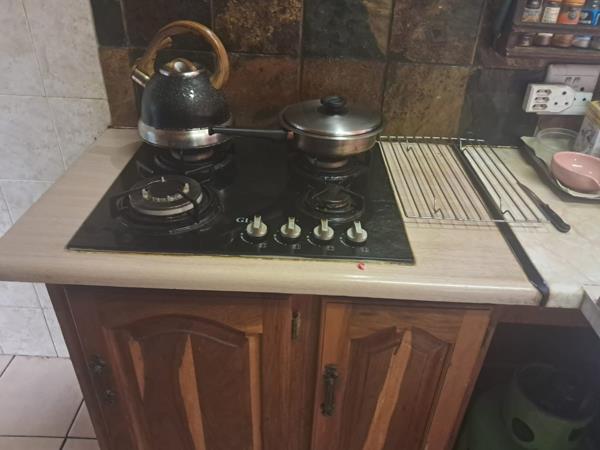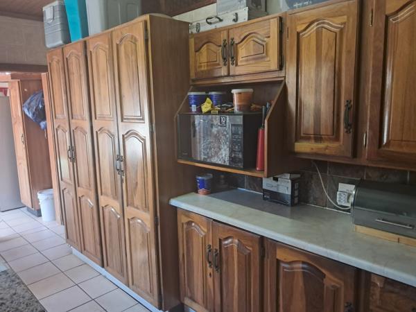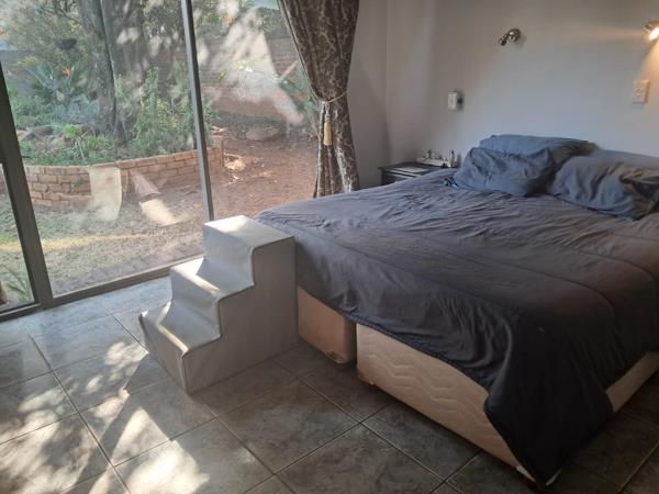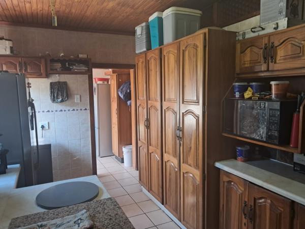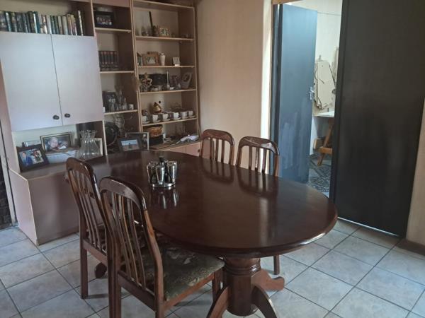 Step outside to a private backyard featuring a covered patio, perfect for outdoor entertaining, and mature trees that offer shade and privacy. The property includes a swimming pool, which, while currently unmaintained, represents a fantastic asset for future recreation. With five open parking bays, there is abundant space for vehicles. The property is pet-friendly, secured with a fence and access gate, and includes a flatlet and outside toilets, adding to its versatility.