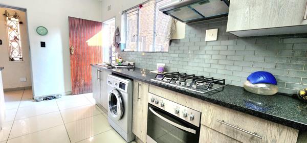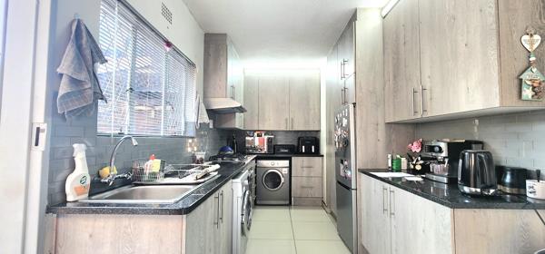 - Modern spacious kitchen with ample cupboard space, gas hob, under the counter oven, washing machine andamp dishwasher connection