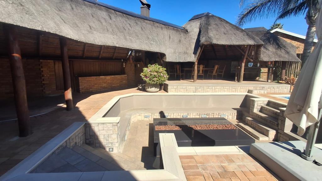 Heated pool, sunken jacuzzi, gas braai pit, outdoor bar, and massive lapa with dual built-in braais an entertainers dream