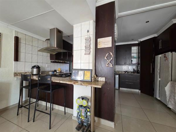 Stepping outside, youll discover a private haven designed for leisure and enjoyment. The sparkling swimming pool invites you to cool off on warm days, while the lapa with a built-in braai is the perfect spot for entertaining guests or spending quality time with family. The garden adds a touch of greenery, complemented by the paved exterior for low-maintenance convenience. The property is fully fenced, ensuring privacy and peace of mind.
