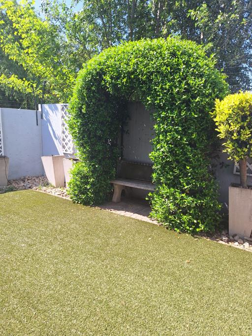 Stunning duplex townhouse offering you double automated garages. You can enter in the house through the garage. Lovely kitchen with a separate scullery and court yard area. Guest toilet. Spacious open plan lounge and dining room leading to a enclosed patio. The garden offers you a Braai area and a well established garden. This unit is pet friendly for small dogs or cats.