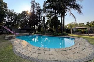 The main house welcomes you with an expansive lounge perfect for family gatherings or entertaining guests. The sunny family room seamlessly opens up to a beautifully maintained garden, complete with a charming thatched area overlooking a solar-heated pool. Enjoy weekend gatherings or quiet outdoor moments in this serene setting. The property also features a lovely undercover paved gazebo and a tranquil koi pond, adding to its charm.