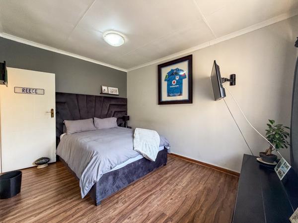 This expansive 5-bedroom, 3.5-bathroom family residence in Brackenhurst, Alberton, offers a blend of modern comfort and practical living. The interior boasts two spacious lounges, and a dedicated dining room providing ample space for relaxation and entertaining. The heart of the home is a modern kitchen, featuring light wood-grain cabinetry, sleek black granite countertops, an integrated electric hob on a functional island, an under the counter oven, and space for all your appliances. Abundant natural light floods the living areas, enhanced by tiled flooring and large sliding doors that create a seamless indoor-outdoor flow. A dedicated study and gym area that can be used as a separate flatlet. Upstairs there is a built-in bar area that opens up onto a balcony that includes a built-in braai for entertainment with a guest bathroom.
