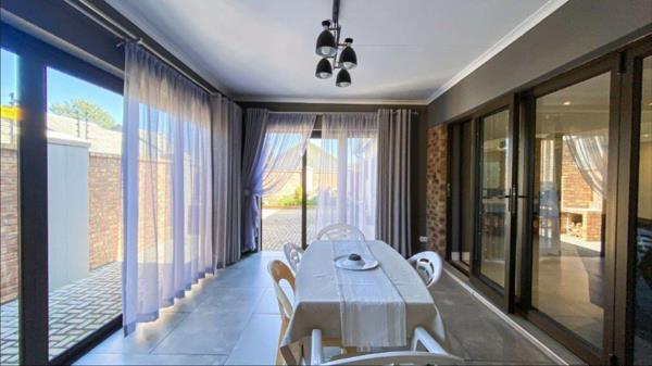Your vehicles will be secure in the double automated garage, fitted with modern aluminum doors for seamless access. Year-round entertainment is a breeze with the enclosed patio leading out to a well-maintained garden and dedicated braai area, perfect for weekend gatherings and family celebrations.