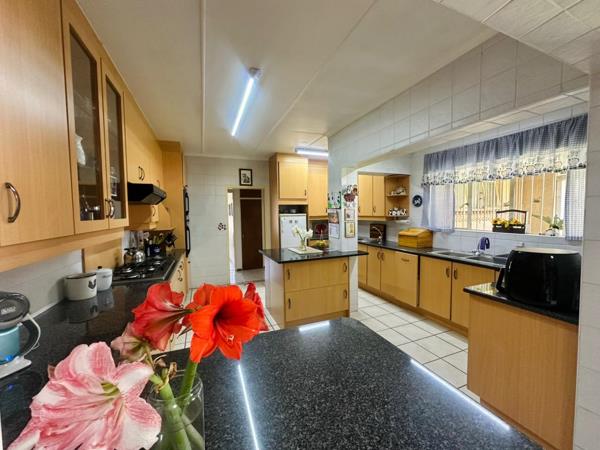 The heart of this home is the magnificent enclosed Lapa, a year-round entertainers dream with dual built-in braais and seamless flow to the sparkling swimming pool and manicured garden. Picture sun-drenched weekends spent with loved ones, the laughter echoing beneath the trees. With a home office and secure, under-cover parking for a caravan and 4 additional cars besides the double automated garage that also offers a workshop with storage space, this rare gem offers the ultimate balance of style, safety, and functionality.