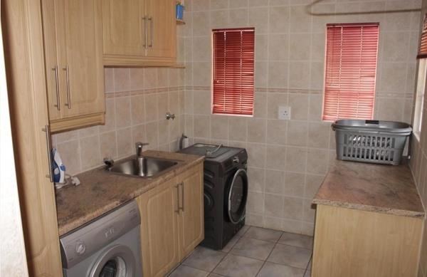Culinary enthusiasts will appreciate the well-appointed kitchen, a true chef''s delight with extensive light wood cabinetry, durable granite-look countertops, and integrated appliances including a built-in oven and hob. Ample storage and natural light make this space both functional and aesthetically pleasing. A dedicated laundry room, complete with a utility sink and space for multiple machines, adds to the home''s practicality. Further enhancing its versatility, the property includes a separate flatlet or staff quarters, offering additional accommodation or a private workspace.