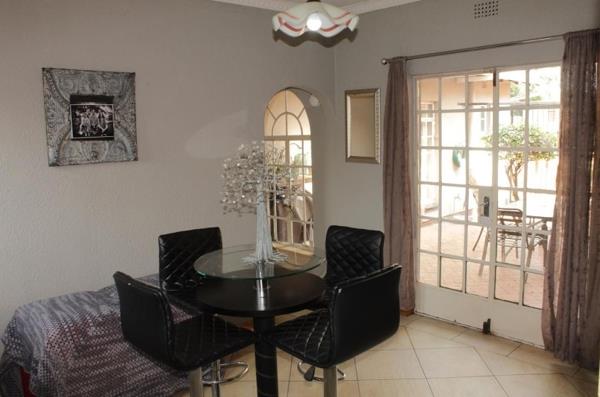 Each of the three bedrooms provides a tranquil retreat, with unique touches such as an arched window in one, ensuring comfort and style. The two bathrooms are thoughtfully designed to cater to the needs of a discerning family. Outside, the vast paved areas offer abundant parking and low-maintenance living, while the double garage provides secure vehicle storage. Embracing modern sustainability, the home is equipped with solar panels and fibre connectivity, ensuring efficiency and high-speed internet. Pets are welcome, completing this idyllic family haven in a sought-after South African locale.
