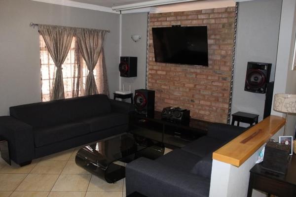 Discover an exquisite suburban sanctuary in the heart of Brackenhurst, Alberton, where sophisticated design meets unparalleled comfort. This magnificent 3-bedroom, 2-bathroom residence, set on a generous 1560 sqm erf, offers a lifestyle of refined elegance and modern convenience. The property immediately captivates with its meticulously paved frontage and a striking grey exterior complemented by a classic red-brown gable roof, hinting at the grandeur within. A welcoming covered entrance leads to an interior adorned with unique architectural elements, including stacked stone accent walls and a prominent glass block window, setting a luxurious tone.
