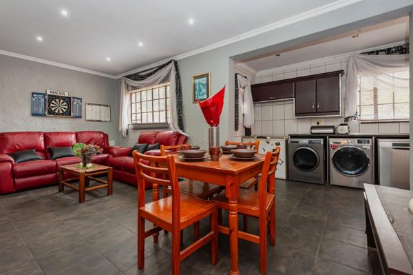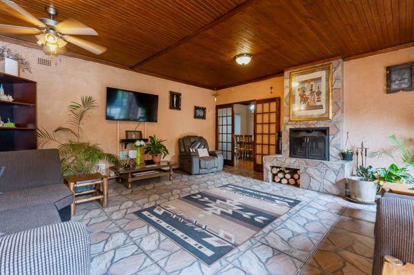Thoughtfully designed for both family living and remote work, the property includes a spacious lounge with pine ceilings and a double-sided fireplace, a dining room, games or breakfast room, study, and additional office or sunroom. The double garage offers extensive built-in storage. An impressive 128m² enclosed entertainment area with braai, bar, kitchenette, surround sound, and solar-heated pool creates exceptional hosting and income-generating potential.