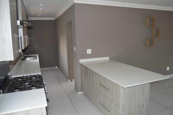 As you step inside this beautiful home, you''ll be welcomed by a spacious open-plan lounge and dining area that seamlessly connects to a modern kitchen. The kitchen is truly the heart of this home, featuring sleek Caesar stone countertops, a breakfast nook, a gas stove with an extractor fan, and ample storage space. The open-plan design ensures a spacious and inviting atmosphere, ideal for relaxation and entertaining.