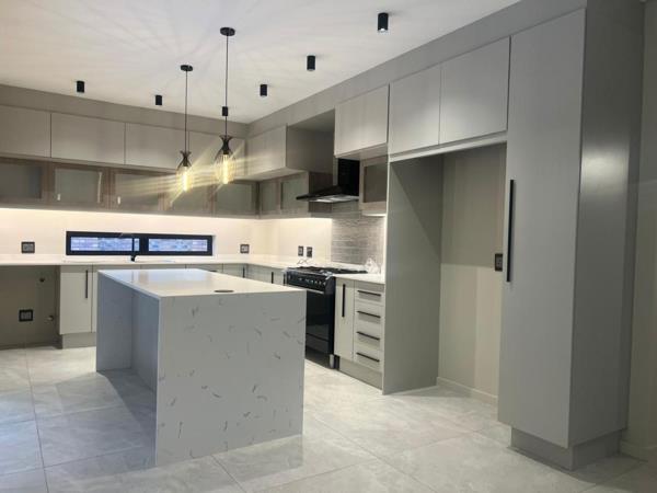 New Development Property in the Heart of Brackenhurst. Step into refined living with this newly built home in the heart of Brackenhurst. This elegant three-bedroom residence features a luxurious master en-suite, complemented by a modern kitchen finished with quartz countertops and a separate scullery. The open-plan design seamlessly connects the lounge, dining, and living areas, creating a spacious and inviting atmosphere.