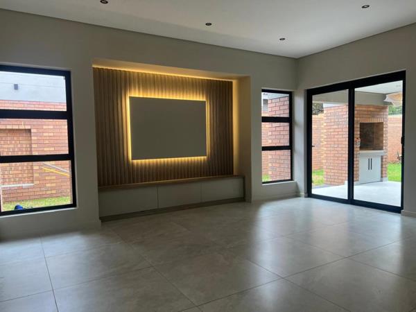 New Development Property in the Heart of Brackenhurst. Step into refined living with this newly built home in the heart of Brackenhurst. This elegant three-bedroom residence features a luxurious master en-suite, complemented by a modern kitchen finished with quartz countertops and a separate scullery. The open-plan design seamlessly connects the lounge, dining, and living areas, creating a spacious and inviting atmosphere.