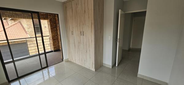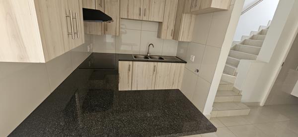 This duplex unit comprises of an open plan kitchen with ample cupboards and granite tops, lounge/dining area with sliding doors that lead out to the covered patio and enclosed garden. There is also a guest toilet downstairs perfect for visitors.