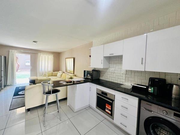 This contemporary home features three spacious bedrooms, each with built-in cupboards and sleek laminated flooring. The full bathroom is thoughtfully designed to meet all your daily needs. The open-plan lounge is the centerpiece of the home, effortlessly connecting to a modern kitchen complete with a built-in oven and hobideal for cooking enthusiasts.