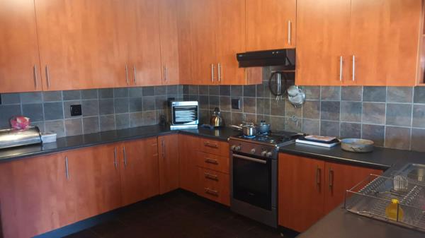 Step outside to a private courtyard with a built-in braai, ideal for weekend gatherings. The home also features a water sprinkler system to keep your garden lush, and a remote-controlled gate for added security and ease of access.