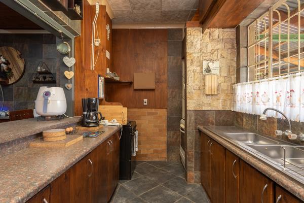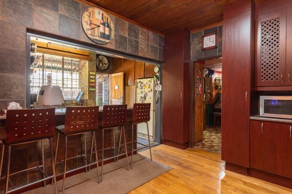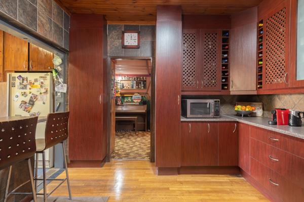 The property features an impressive kitchen with ample cabinetry, countertop space and an offset traditional bar.