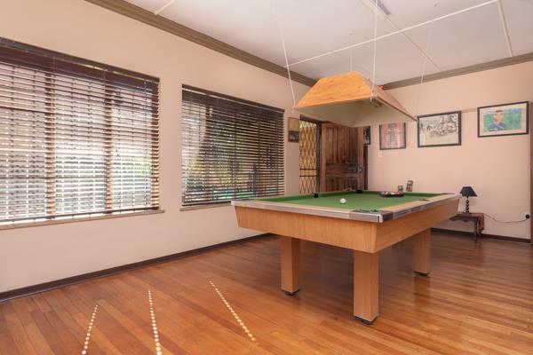 The indoor entertainment area provides an ideal space for gatherings and relaxation. Step outside to your private oasis, complete with a sparkling pool and veggie garden.