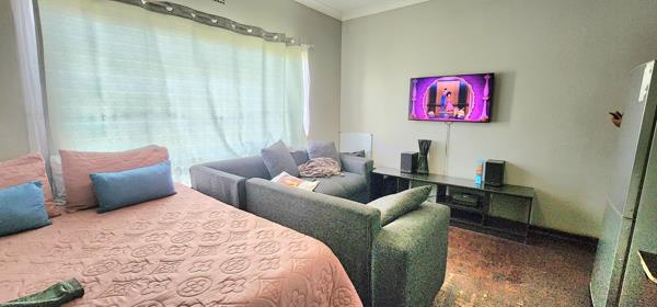 Externally, the residence boasts a private patio, ideal for outdoor leisure, alongside a well-maintained garden and practical paving. Two dedicated parking spaces are available. Enhancing functionality, the home includes a separate flatlet, staff quarters, a dedicated laundry area, and ample storage, alongside convenient outside toilets.