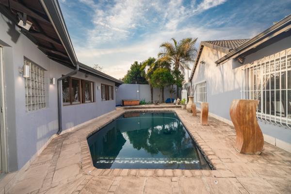 This beautifully maintained residence offers the perfect balance between modern practicality and family lifestyle. Featuring 4 spacious bedrooms and 2 bathrooms, the home is anchored by a granite-topped kitchen with breakfast nook, flowing seamlessly into the dining room, lounge, and TV room. At its heart lies an exceptional entertainment haven - a fully equipped braai area and jacuzzi that open directly onto a sparkling swimming pool, creating a private resort atmosphere. The layout is designed for both day-to-day comfort and hosting unforgettable gatherings.