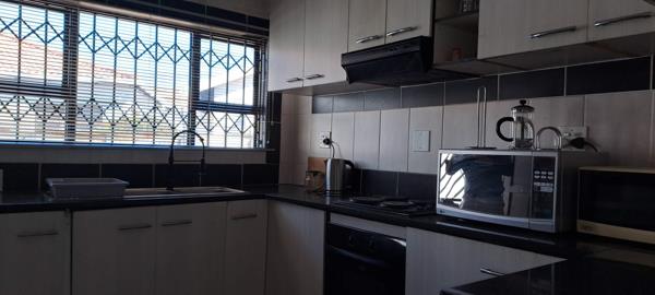 The inviting lounge and dining area flow effortlessly onto a covered patio, creating an excellent space for entertaining guests. Whether hosting a summer barbecue or a cozy gathering, the built-in braai and well-maintained backyard provide the ideal backdrop. The expansive yard also offers plenty of potential for future extensions, allowing you to personalize your living space even further.