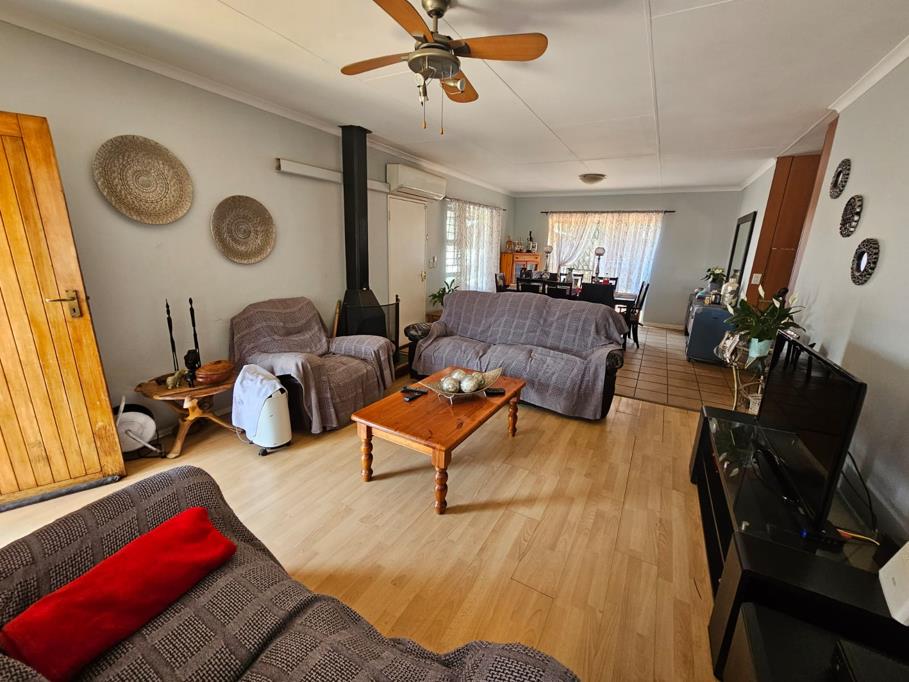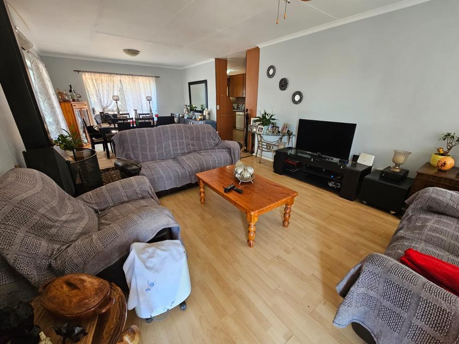 Open plan Lounge and Dining rooms with laminated flooring.