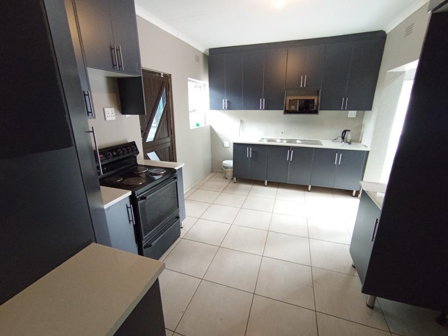 Step inside to discover a thoughtfully designed interior with clean tiled flooring and freshly painted light grey walls throughout, providing a neutral canvas. The modern kitchen is equipped with sleek dark cabinetry, light countertops, a double sink and a built-in electric stove. This functional space offers ample storage and direct outdoor access. A comfortable lounge area serves as the primary living space, ideal for relaxation. The residence comprises three well proportioned bedrooms ensuring comfortable accommodation. With three bathrooms, including one onsuite and a convenient guest toilet the home caters to family needs. Bathrooms are fully tiled and feature modern glass shower enclosures. A separate flatlet offers versatile options for extended family, a home office or potential rental income adding significant value and flexibility.