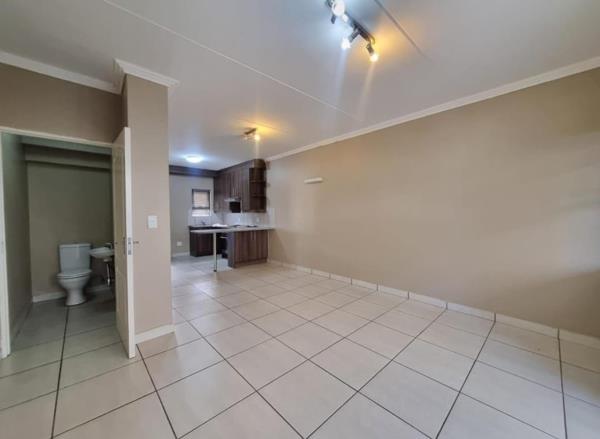 At the center of the home is a spacious open-plan kitchen and lounge area thoughtfully designed to foster a warm and airy atmosphere. The kitchen is well equipped with a practical breakfast nook, a single stainless-steel sink, space for one under counter appliance, a stove, an under counter oven and an extractor fan - providing all the essentials for everyday cooking and meal preparation. Discreet blinds offer added privacy while allowing you to control the natural light throughout the day.