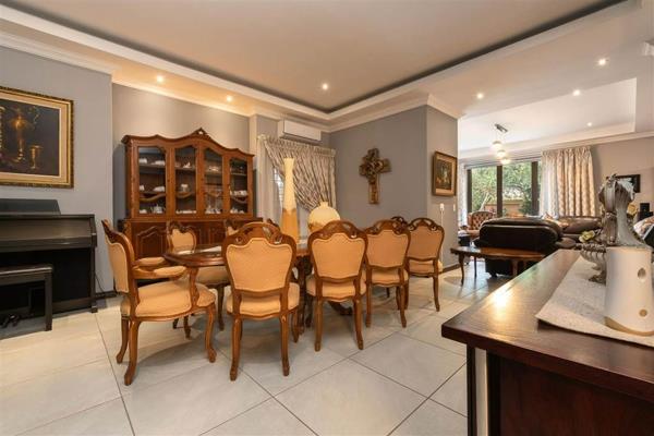 Outside the property unfolds into an outdoor oasis. Expansive manicured lawns provide ample space for recreation while a large paved patio offers the perfect setting for alfresco dining and entertaining. A sparkling swimming pool promises refreshing escapes on warm South African days all within a private walled garden setting. Residents also benefit from exclusive access to the estate''s club house and tennis court, elevating the lifestyle offering.