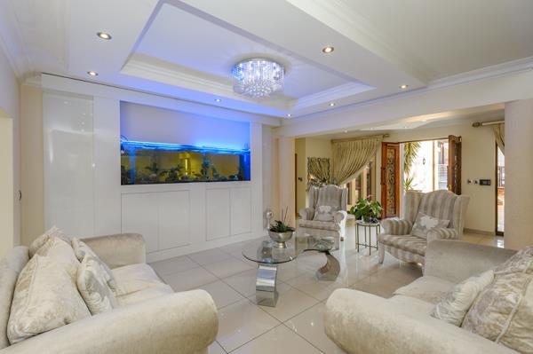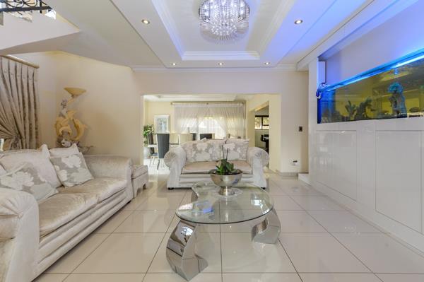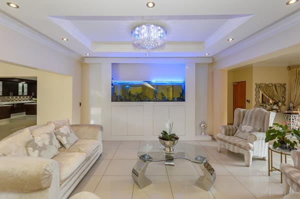 Featuring an open plan layout, spacious lounge, TV room with bult-in fishtank, Chefs kitchen with separate scullery, dining area, study, that all seamlessly flow together, creating an inviting space for family gatherings and entertainment.
