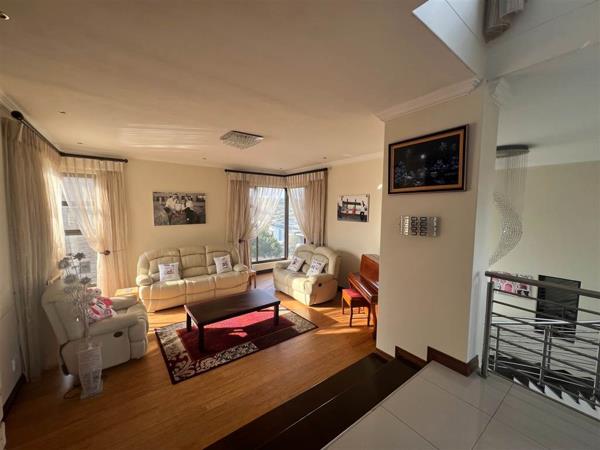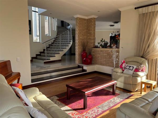 Step inside to discover an inviting fireplace, the kitchen fit for a chef has a well-appointed scullery, and a generous pantry, ensuring both convenience and style in the heart of the home. This house has a large patio and balcony, offering breathtaking views of the beautifully landscaped garden and sparkling swimming poolperfect for entertaining or unwinding in serenity.