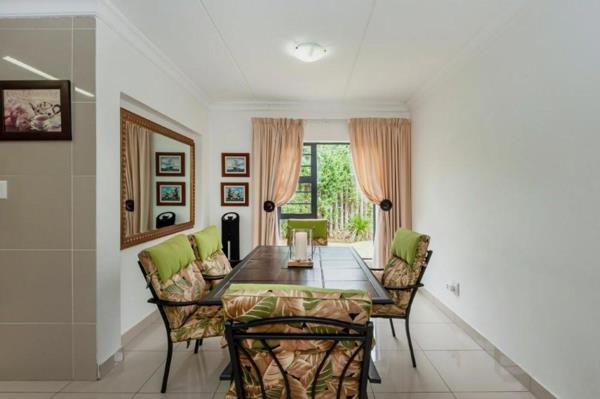 Pet-Friendly Modern Duplex in a Prestigious Estate. This stunning, pet-friendly duplex townhouse offers tranquility and security within the prestigious Meyersdal Nature Estate. It features four spacious bedrooms, each with modern en-suite bathrooms, one of which is conveniently located on the ground floor. The three generously sized en-suite bedrooms on the upper level all have sliding doors that lead out to a balcony.