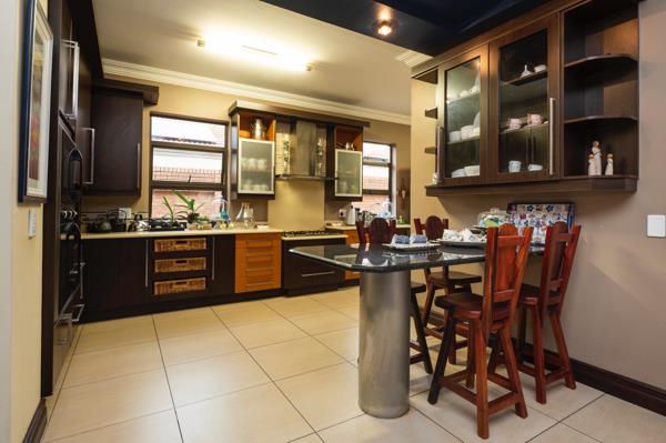 The heart of the home is a designer kitchen featuring which offers plenty of built in cupboards, Breakfast nook, a five-plate gas stove, Double Electric Oven, Walk in Pantry Cupboard. The kitchen flows through to a spacious scullery area.