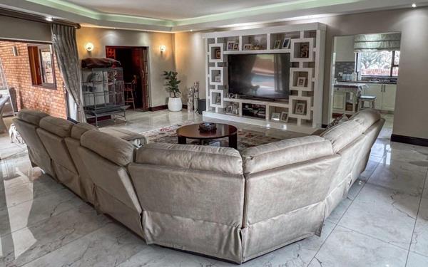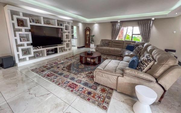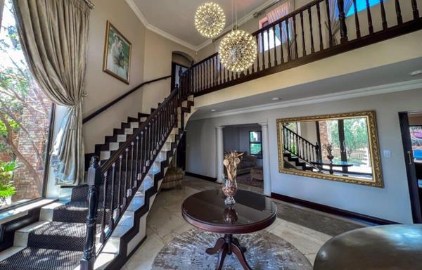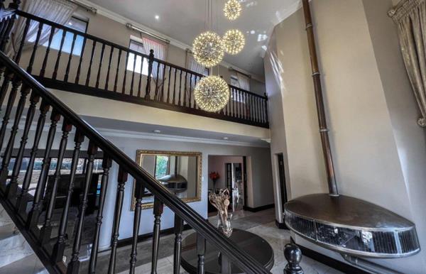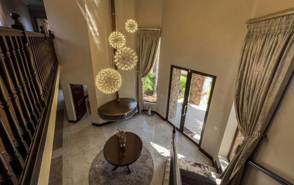 From the moment you enter, youll be captivated by the grand double-volume entrance, featuring a striking anthracite fireplace and chandelier. Designed for both relaxation and entertainment, the home offers two lounges, a formal dining room, a built-in bar, and a private study. The gourmet kitchen is a chefs delight, equipped with high-end appliances and a separate scullery.