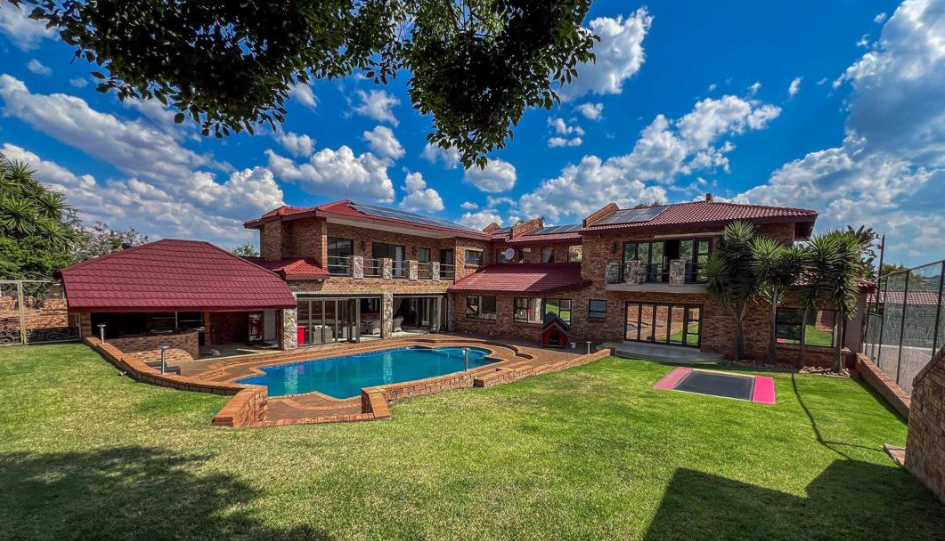 Outdoor amenities include pristine gardens with a sparkling swimming pool, trampoline and an undercover patio with a built-in braai and bar for alfresco relaxation and dining. Extras include a full solar system, CCTV, fiber, wireless security system, two staff accommodations with shared bathroom, three garages, irrigation and a wendy house. In summary, this grand home offers a harmonious blend of luxury, functionality and style for those seeking a truly exceptional living experience.