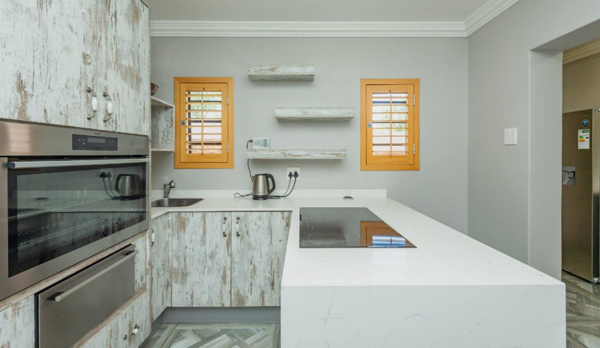 The modern kitchen is thoughtfully designed and equipped with high-end appliances, making it ideal for preparing everyday meals as well as entertaining guests with ease.