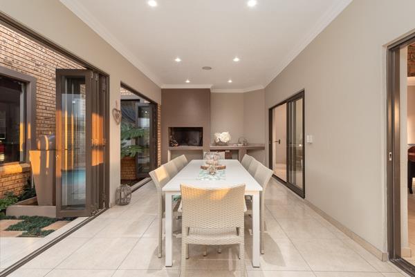- Massive enclosed sun room/patio/entertainment area with built in braai and stack doors to the pool.