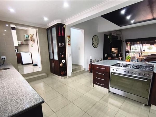 The home welcomes you through a warm and inviting entrance hall that leads into a spacious lounge and dining area, perfect for family gatherings or entertaining guests. The modern kitchen is fitted with built-in cupboards and includes a separate scullery for added convenience. A dedicated study offers the ideal space for working from home or quiet reading.