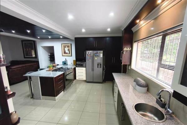 Outside, the property features a sparkling pool surrounded by a neatly paved exterior, creating an inviting outdoor retreat. There are two garages, one covered parking space, and two open parking bays, ensuring ample room for vehicles. The home is fully fenced and secured with electric fencing, offering peace of mind, and it is pet-friendly, making it perfect for the whole family.
