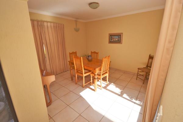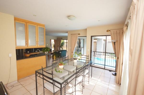 Covered patio complimented with a built in braai overlooking the pool and garden area.