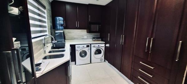 The townhouse offers two generously sized bedrooms, each with ample cupboard space, ensuring convenient storage. Two meticulously designed bathrooms with modern, stylish fittings add to the home''s appeal. The double garage provides ample space for vehicles and additional storage. A state-of-the-art gourmet kitchen with Caesarstone countertops, built-in appliances such as a fridge, freezer, coffee machine, steam oven, and a 5-burner gas stove will delight any culinary enthusiast. An upstairs study, featuring custom built-in units, offers the ideal setting for remote work, while the cozy TV room, also with built-in units, serves as a great space to relax and unwind.