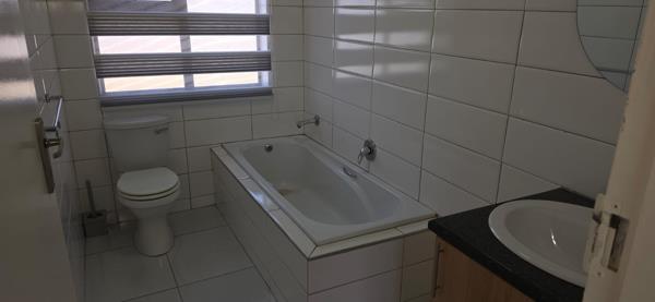 2 stylish bathrooms: one with a bath, basin, and toilet the second with a shower, basin, and toilet. Perfect for shared living or hosting guests.
