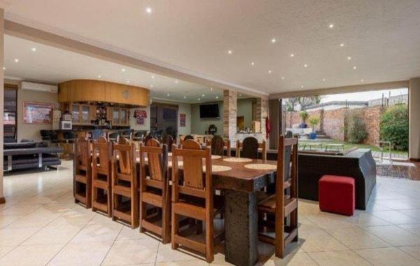 Step outside to a private oasis featuring a sparkling swimming pool with integrated decking, ideal for enjoying the South African climate. The property includes a well-maintained garden and paved areas, offering low-maintenance outdoor living. With two garages and four additional parking spaces, there is abundant secure parking for multiple vehicles.