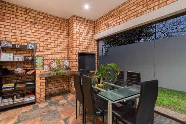 The home offers three generously sized, tiled bedrooms filled with natural light and two full, modern bathrooms with quality fixtures. The open plan lounge and dining area flow seamlessly into a second versatile space next to the enclosed built-in braai patio, perfect as an informal lounge, casual dining area, or home office.