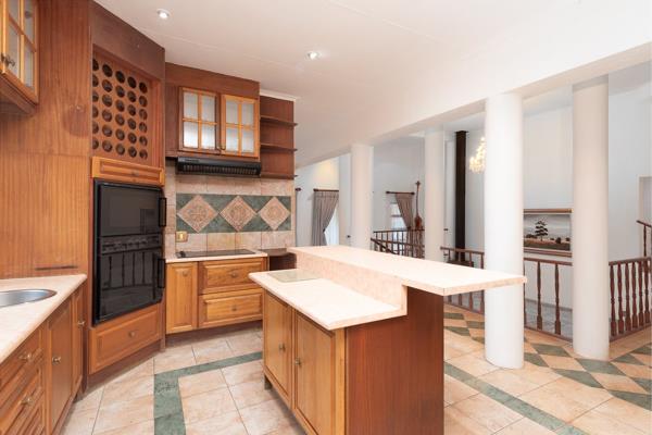 - Solid wood kitchen. Features: centre island and prep bowl, Eye-level oven, glass top stove, extractor fan, Separate scullery with double basin and space for a top loader, Space for a double-door fridge and a large pantry