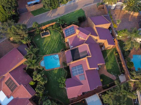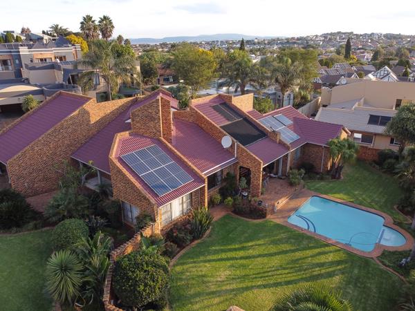 The home is fitted with a 5.5kW inverter, 12 solar panels, 200L solar geyser, prepaid electricity, fibre internet, automated irrigation, aluminium windows with clear burglar bars, and an alarm system linked to Fox Security.