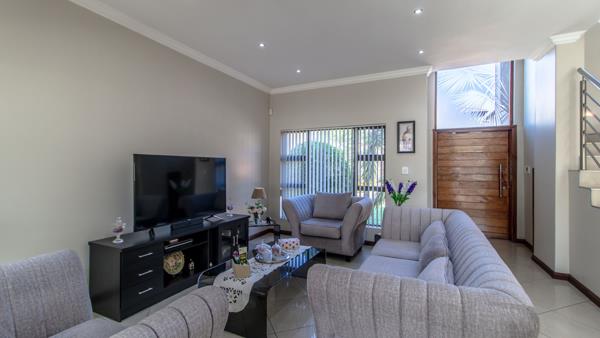 Welcome to your dream home! This exquisite 3 bedroom, 3 bathroom residence offers a perfect blend of modern living and comfort. Nestled within a well-maintained and secure complex, this property is ideal for families and those who love to entertain. As you enter you are welcomed with a double volume staircase. The heart of this home is the expansive open-plan dining room and lounge. A cozy gas fireplace elegantly separates these spaces, creating a warm ambiance for gatherings. Convenience is key with two guest toilets located downstairs.