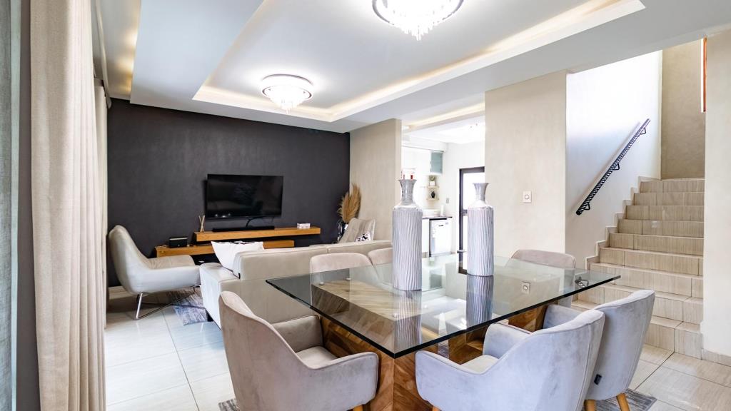 Welcome to an exquisite cluster house with an open plan design featuring a spacious and interconnected lounge, dining room, and family room, creating a seamless flow between the living spaces.