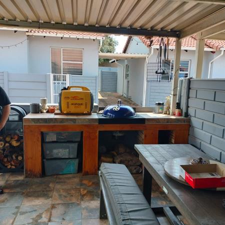 A warm open-plan lounge that flows effortlessly to a patio with a built-in braaiperfect for relaxed weekends