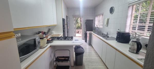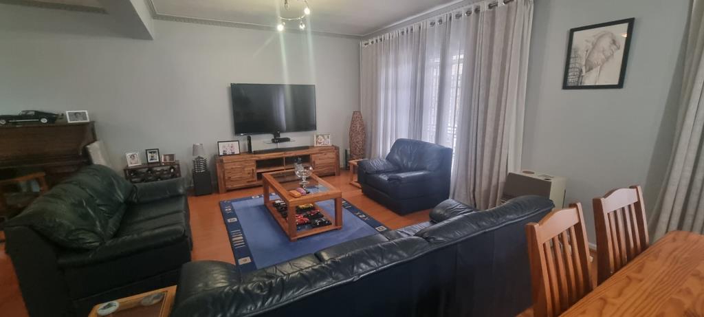 This beautifully maintained double storey unit offers spacious and comfortable living in a sought-after area. The large lounge and dining room flow seamlessly onto a private patio perfect for entertaining. A separate kitchen is fitted with ample cupboards, a gas stove, and oven, and leads out to a well-sized, manicured garden. A guest toilet downstairs.